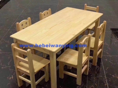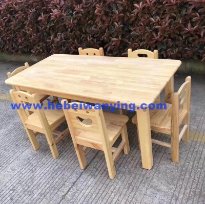 兒童成套桌椅幼兒園課桌椅全實木橡木桌椅松木桌椅兒童方形六人桌 110*60*55橡木桌